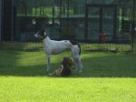 Kunnen de baasjes hier nu niks aan doen? Die staan daar maar te kletsen over de Provence. Weeral nieuwe hond? Die nieuwe hond lijkt interessanter dan wij! 😉
