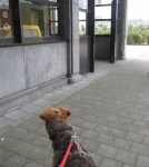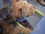 Ja, de deuren gaan weer open en dan de lange gang in! En stappen maar! Weer lift! En waar zijn we nu? Een markt? ’t Vrouwtje zegt dat het rommelmarkt is. Ik mag eens kijken, maar we gaan weeral verder! Hoogstraat? Die straat is even laag als alle andere, hoe raar! Grote markt? Ja, een groot huis, dat wel! De kathedraal! Oh, die ken ik! De Groenplaats! Die ken ik ook. Geen terrasje vandaag. Wel een plaatje plikplokken voor een fan en een mevrouw die komt vragen of de oude mevrouw in de rollende stoel mij eens mag strelen… Natuurlijk, zegt het vrouwtje. De oude mevrouw vertelt dat ze ook een airedale had. Ze is heel lief, deze oude mevrouw! Haar benen werken niet meer, daarom heeft ze nu geen hond meer. Ze kan met een hondje niet gaan wandelen zoals ’t hoort, zegt ze. Hoe jammer, hé, vrouwtje?!
