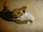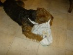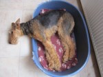 Listen: weeks ago, my mum was at the computer and she had to laugh (happens often when she looks at pics of airedale-friends). She said: this is a funny expression I never heard before… She read: “Gracie is on my list”. One of the humans at Gracie’s house wrote that! Gracie chewed on a cable! An important cable! (Well done, Gracie, at least I understand you had fun!) Little left of the cable…