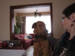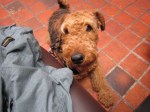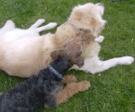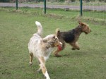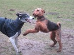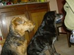 Hahaha, ik zwart? Neen, een airedale-lady is niet zwart! Zie je dat niet? Opa lennox, je weet er niks van, je wordt oud!