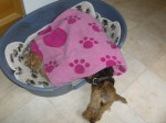 What did I do? I was “sleeping” in the bed of my grandpa Lennox… He let me take a nap there… And me, stupid me, real stupid me… What did I do? I chewed on his new bed, only few weeks here, that bed!