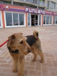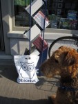 Wat zeg ik je! Zie je wel! We gaan naar de tram! Yes! Oei, we stappen hier al af, dat is bij de groene schorten. Oeioei, wat nu? Oh, is het dat maar? Ik moet op de weegschaal. Ik ga flink zitten rondkijken op het weegvlak. Die mevrouw met dat kleine hondje vindt me uitermate flink! Wat is dat nu weer: uitermate? 23,600 kg. Dat is flink voor zo’n mooie airedale-lady als ik. Ik heb ook flink gesport: zwemmen in zee, judo met Gitte en hardlopen met veel vriendjes! 😉