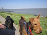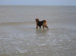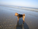 En nu in het water? We oefenen hard, mijn vrouwtje en ik! Ik ben nu niet meer bang van de zee, ik loop er zelfs in en uit! Flink van mij. Nu ja, ik ben nu een echte airedale-lady en die is niet bang van de zee! 😉 Zie je dat, opa lennox: ik zwem ook in de zee!