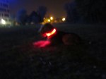 My goodness! My dogness! This is… well, it is… it is… flashy! My new collar to go out in the dark? Dog, dog, dog… this is special! Worst of all: I can’t hide anymore! I can’t fool mum anymore! She sees me everywhere!