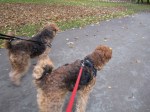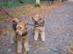 So we meet in the park and go for a walk! Beautiful weather for this time of year! Many other parkvisitors were looking at us, airedale-ladies. Yes, we know it folks, we are special! And yes, it is even more special to see two of the same kind! Have a good look! This does not happen every day, here!