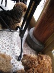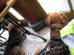 We hurried inside! Féline and me we liked it there, we had our personal televisionset! (See the pictures!) After a while, I finally got ‘settled’. And the mums were talking and drinking coffee! Afterwards we went for another walk and mum took the blinking box… of course, for a fototoot!