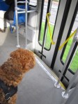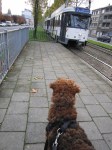 The tram is always noisy, but I don’t mind. Mum took me there already when I was only 8 weeks old… Hey, guys, on the seat, in the tram??? Hope that mum does not read this! I wouldn’t even dare to think about it, me being on a seat in the tram… mum would be furious! We stay near the doors, then I can see everything passing by, you can see it on the pictures!