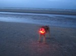 But these days it’s dark early! And mum wants to see where I am, always, when I’m off the leash… Me, I don’t think that is necessary, but mum… she is stubborn! So, remember mum bought me a light-collar? A red one? An overseas friend said that I’m a real UFO then! So I went UFO-ing on the beach! Even when it was dark, I could run to the far-away-sea! I was so happy about that! I ran, and ran and ran!!! 😉