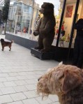 The laughing lady in the wheelchair is very friendly. I give her some kisses. She says I’m the sweetest dog ever! You hear that, mum, you hear it??? Oh, and she will take a picture of me, the bear and my mum. I can show everybody I have a bear-friend, she says. But it’s a bit a pity, the very nice lady says she doesn’t want to be in the pic too! Okay, that’s alright.