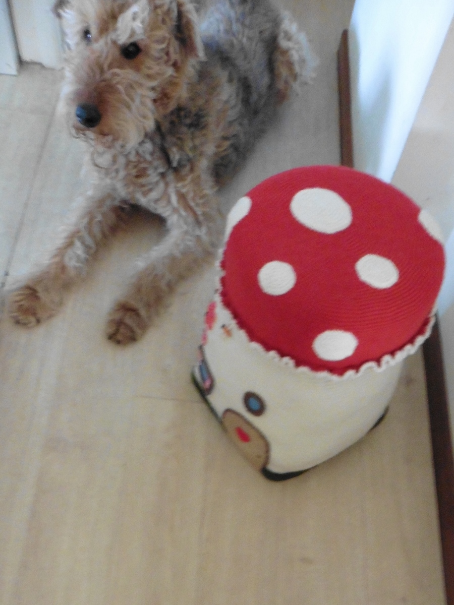 Mum got the crocheted gnome and showed Lizzie… from far away… she might eat it…