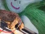 - Beetje moe… even pootje likken… Stok is heel sterk!